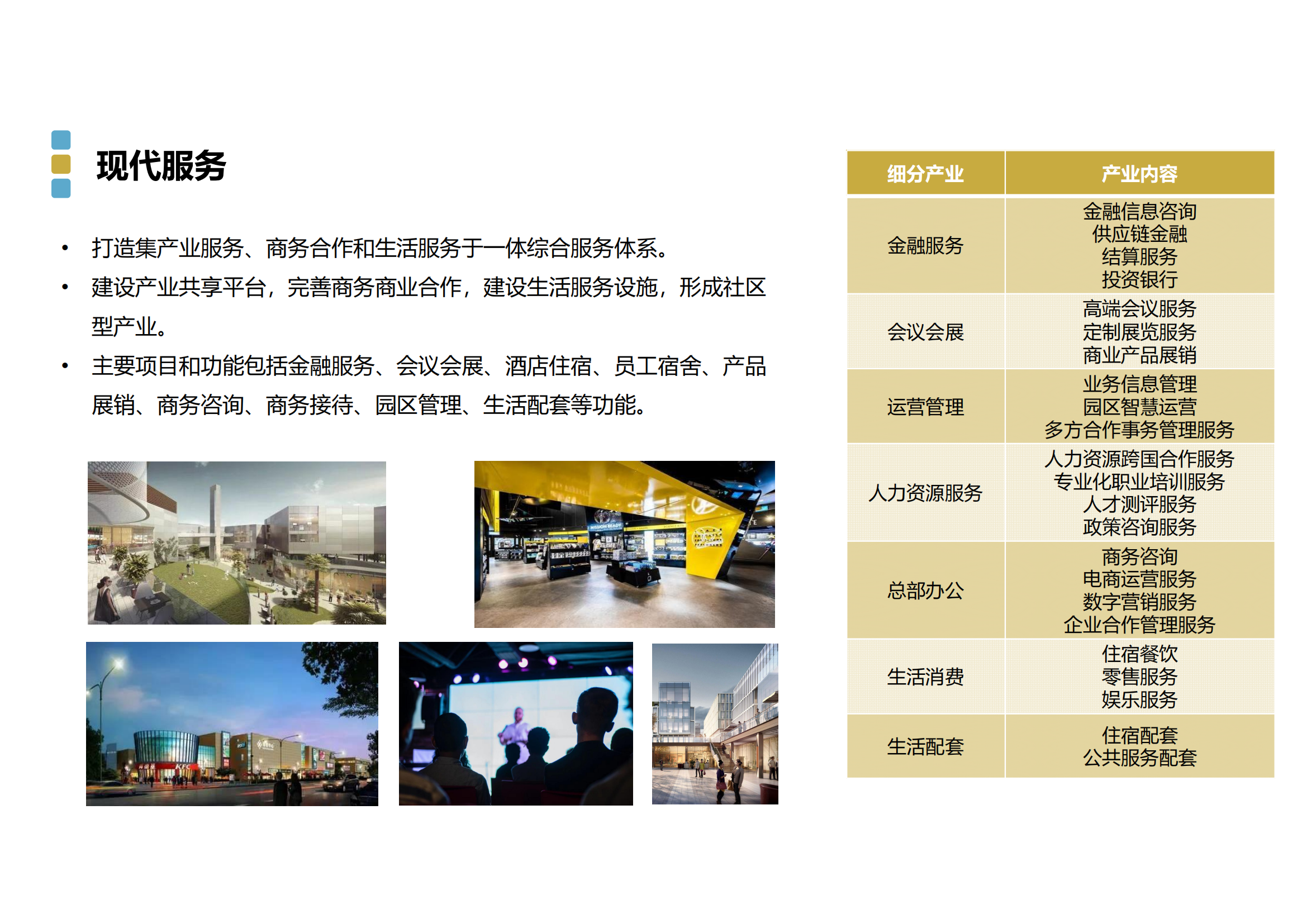 Парк уже подал заявки на соответствующие проекты и земельные сертификаты, общий объем инвестиций составит 50 млрд. юаней. Парк будет обеспечивать синергетическое развитие пяти ведущих отраслей промышленности: интеллектуальной портовой логистики, новой энергетики, новых материалов, интеллектуального промышленного производства и современной сферы услуг, создавая промышленную схему "одна основная, две специальные и две расширенные".