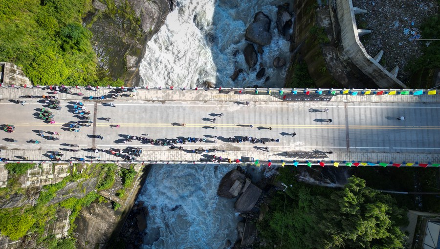 1 сентября 2023 года, пассажиры из китая и непала идут по мосту китайско-непальской дружбы на кпп чжанму в шигадзе сицзанского автономного района на юго-западе китая. /фото: синьхуа/